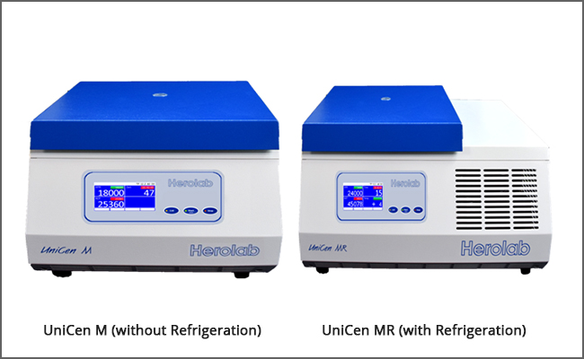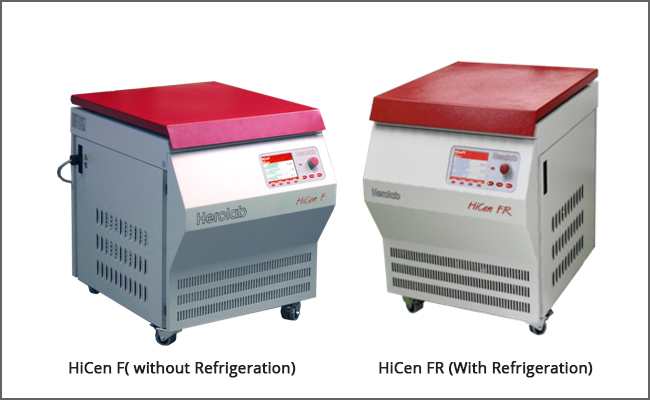 The Red Line range of centrifuges have sample volumes of 24 x 0,2 ml up to 6 x 1000 ml. The models are:Table Top models: HiCen T + TR (R for Refrigeration) and HiCen GT Models that fit under the bench (on rollers): HiCen F + FR Larger floor standing centrifuges with refrigeration: HiCen GR (on rollers), HiCen SR and HiCen XL. These centrifuges can be recognised by the red cover of the centrifuges as well the rotors which also have red covers.The table-top and floor standing centrifuges have an identical drive and mostly all of the rotors of the Red Line can fit in every centrifuge of the range.The models differ in the sizes of the chamber and the power of the machine. Therefore the maximum speed differs across the range.