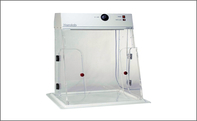 PCR Workstation have compact front glass to protect the sample during work. Timer up to 120 min for longtime cleaning, chemical DNA cleaners not needed. Doors with safety switches to protect the user from UV radiation. one or two white light tubes for routine work.