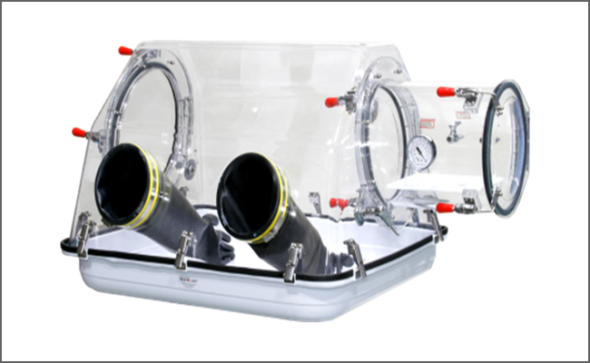 The 855-AC (Anaerobic Chamber) has been designed for manually controlling your atmosphere when working with Oxygen sensitive materials. It is perfect for working in situations requiring low levels of Oxygen during critical isolation of the operator or your research materials. Any inert gas may be used.